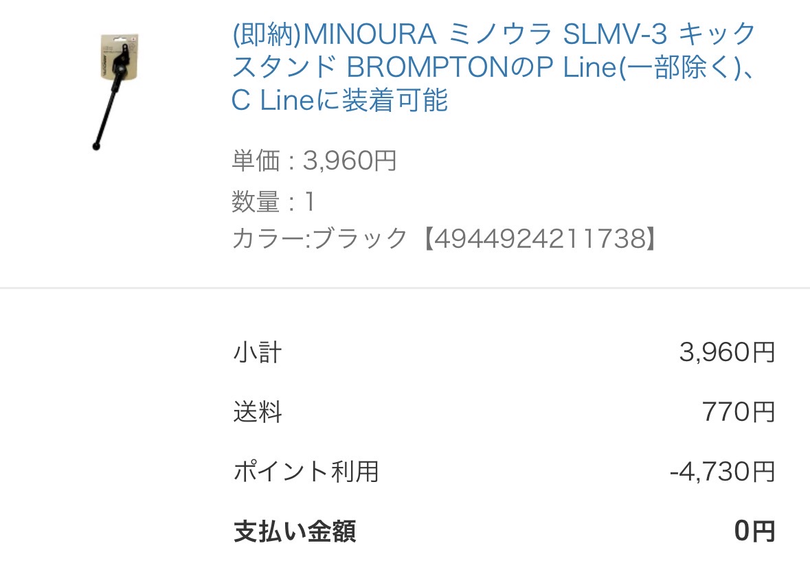 価格は3,960円だったけど、ポイントを使って0円だった。
