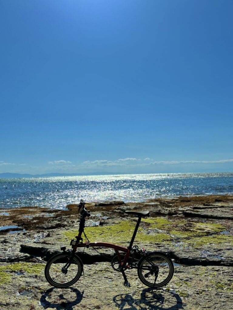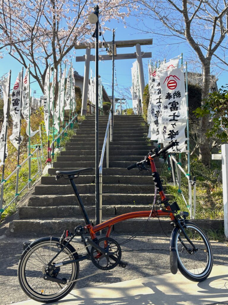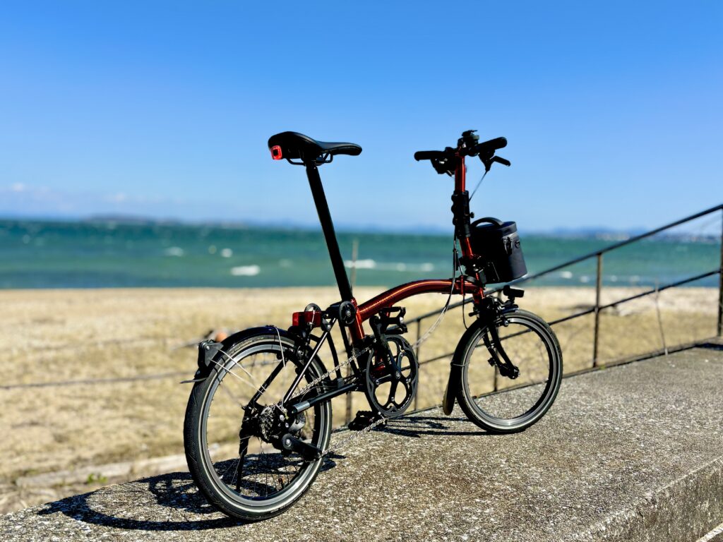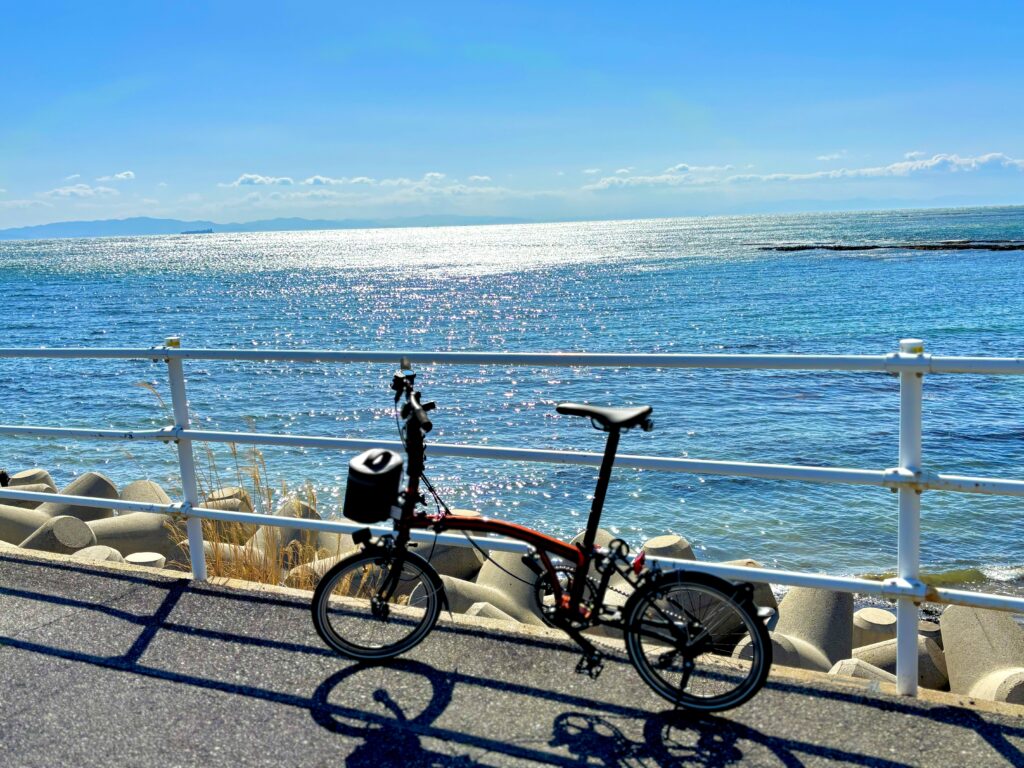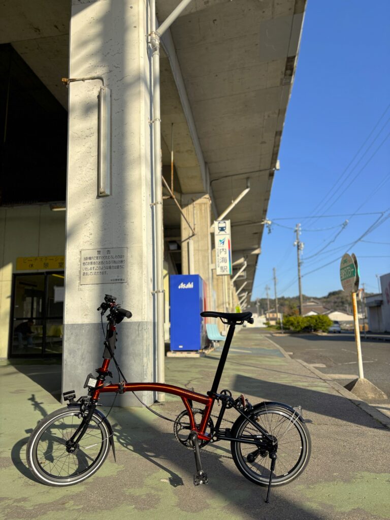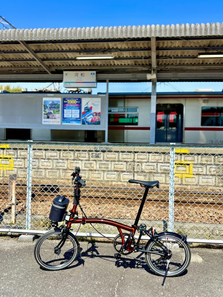 駅を出て駐輪場の近くで、折り畳み自転車 ブロンプトン をパタパタと組み立てる。