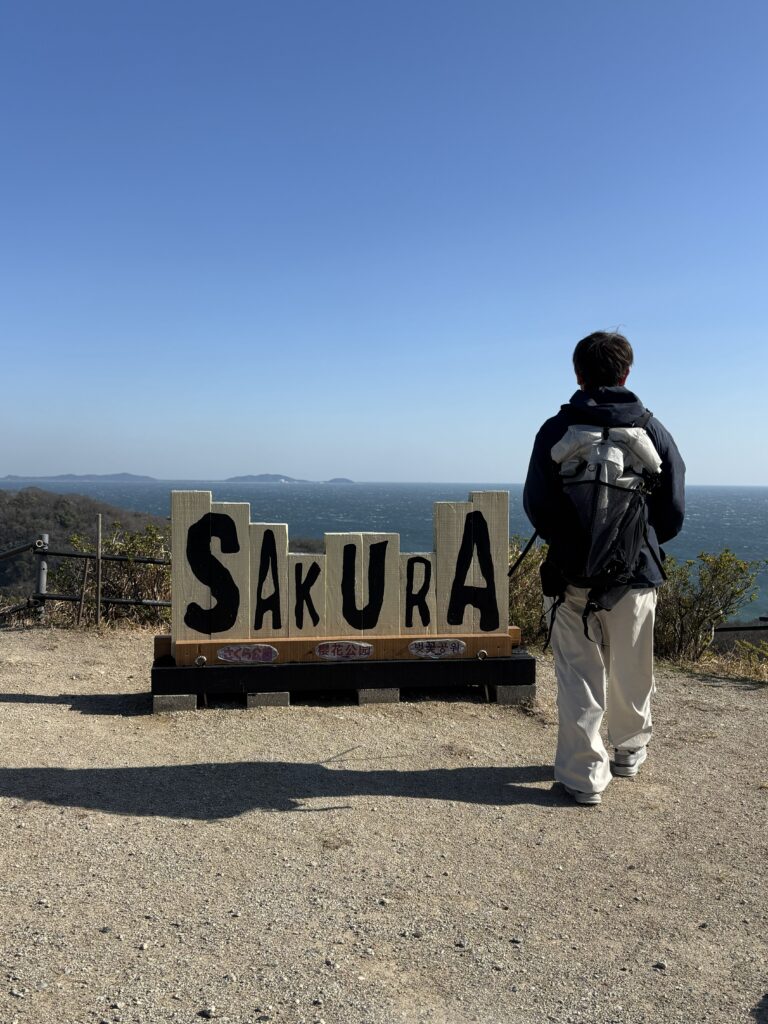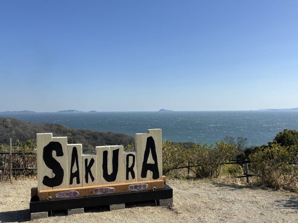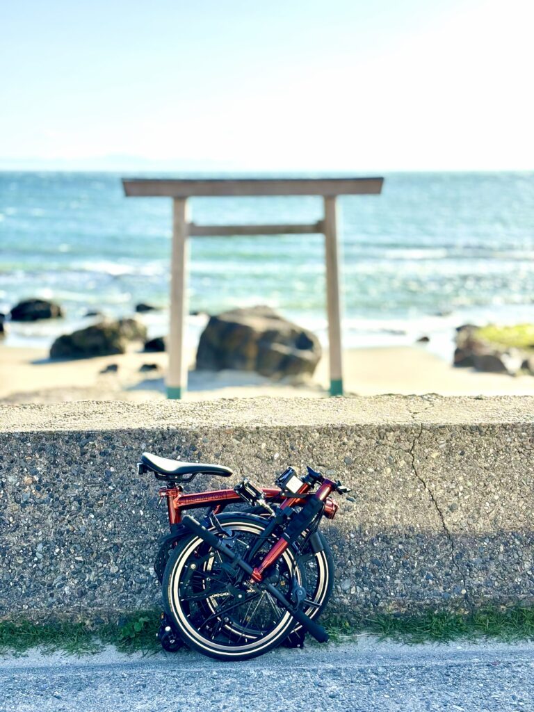 桜公園からはすぐで、海岸線の向こうに 鳥居 が見えてくる。