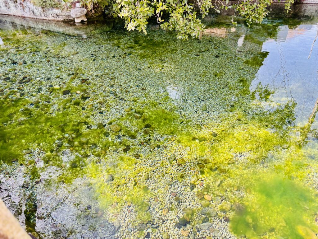 民家の奥に見えたので通っていいのか不安だったが進むと、圧倒的透明感が特徴的な白狐温泉の源泉に辿り着いた。