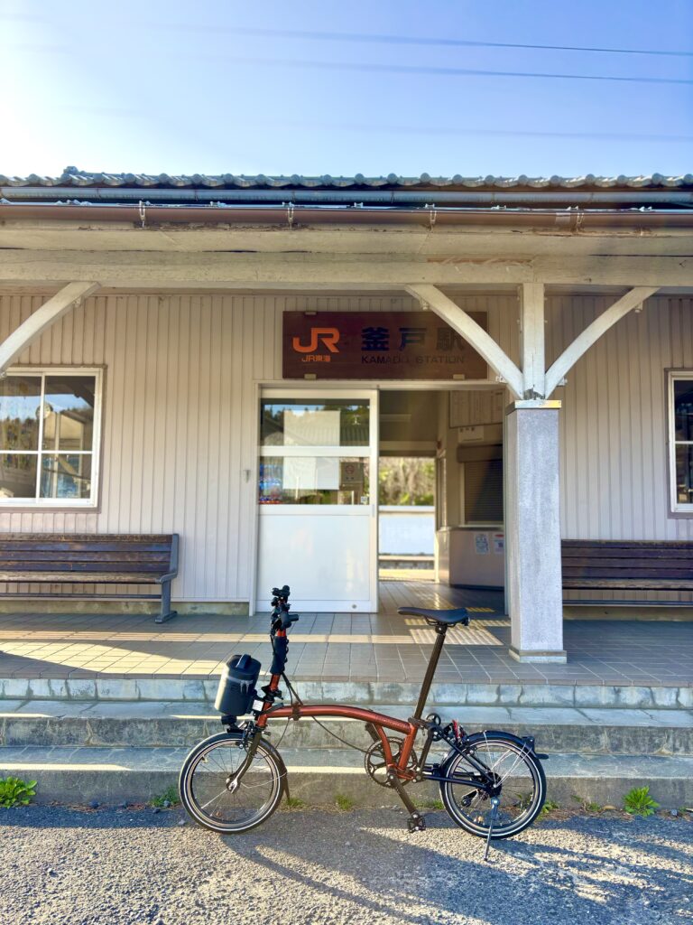 山をくだって、駐車場につきブロンプトンに乗って近くの釜戸駅へ。