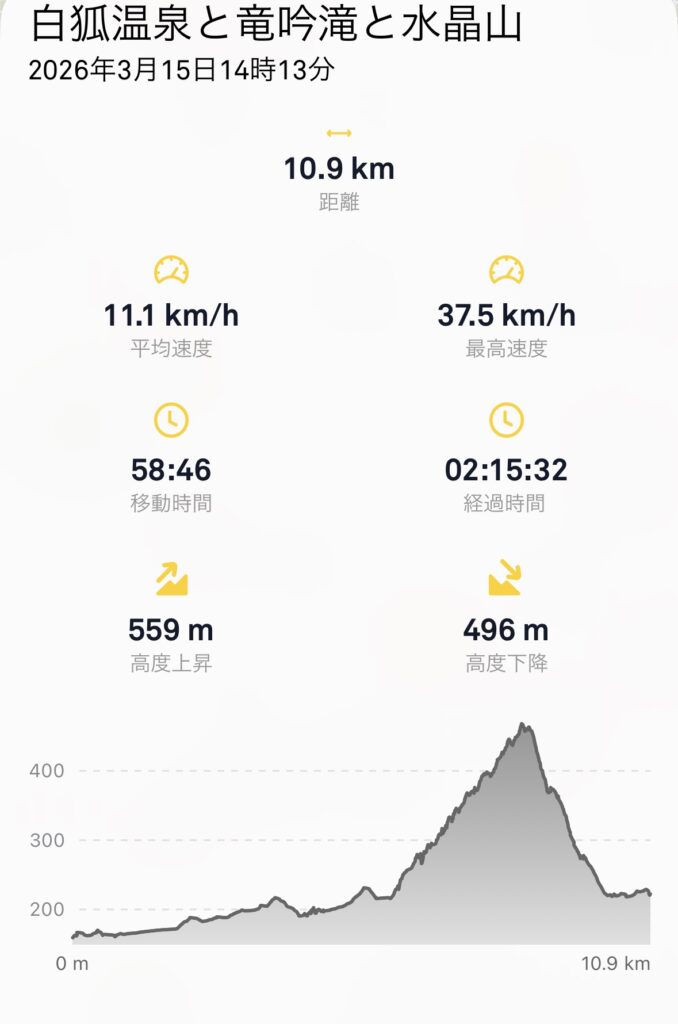さて次の目的地は「竜吟の滝と水晶山」だ。